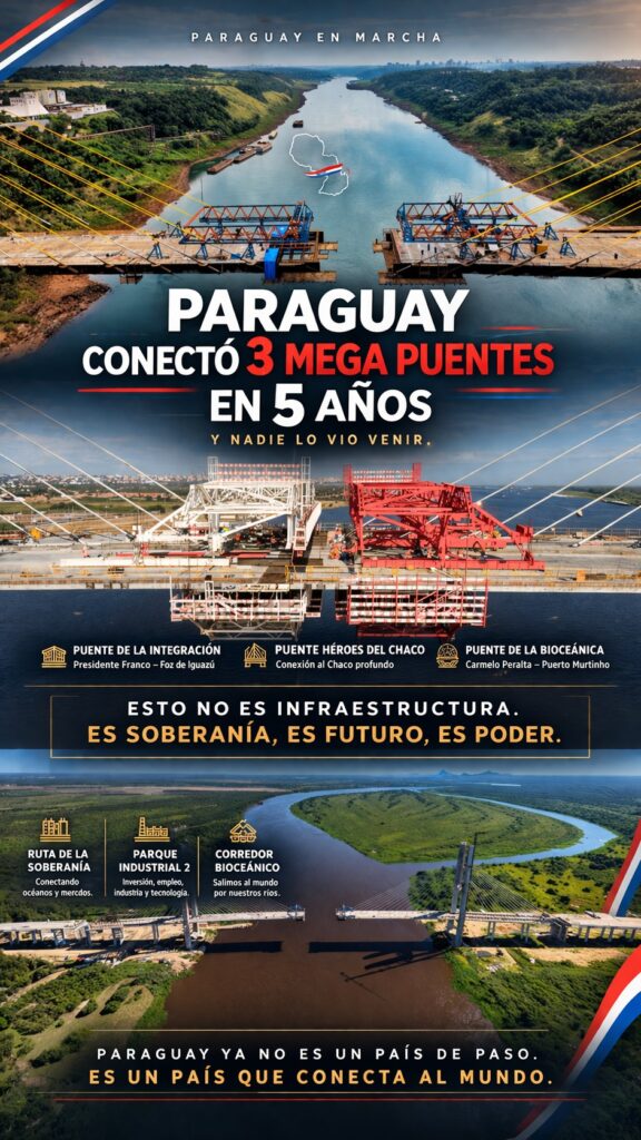 El Corredor Vial Bioceánico está en la última etapa y la construcción el “Puente de la Integración” que une Presidente Franco con Foz de Iguazú, el “Puente Héroes del Chaco” conexión al Chaco profundo y el “Puente de la Bioceánica” que conecta Carmelo Peralta con Puerto Murtinho son obras concretas que lo demuestran.
