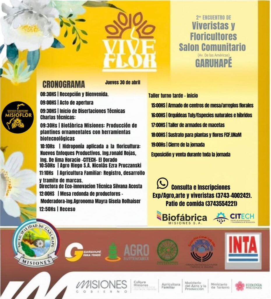 El próximo 30 de abril y 01 de mayo se realizará en el Salón Comunitario de Garuhapé el segundo encuentro de viveristas y floricultores en el marco de la “2º Vive Flor”.